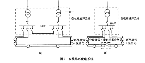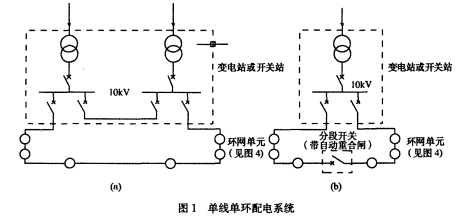 2006年1月正式實(shí)施的江蘇省地方標(biāo)準(zhǔn)《江蘇省工程建設(shè)標(biāo)準(zhǔn)》DGJ31/J14-2005中規(guī)定,配所--般應(yīng)優(yōu)先采用環(huán)網(wǎng)單元(環(huán)網(wǎng)單元是指環(huán)式配電系統(tǒng)中配電所的系統(tǒng)接線)。可見環(huán)式配電系統(tǒng)是10kV配電系統(tǒng)的推薦系統(tǒng)和發(fā)展方向。